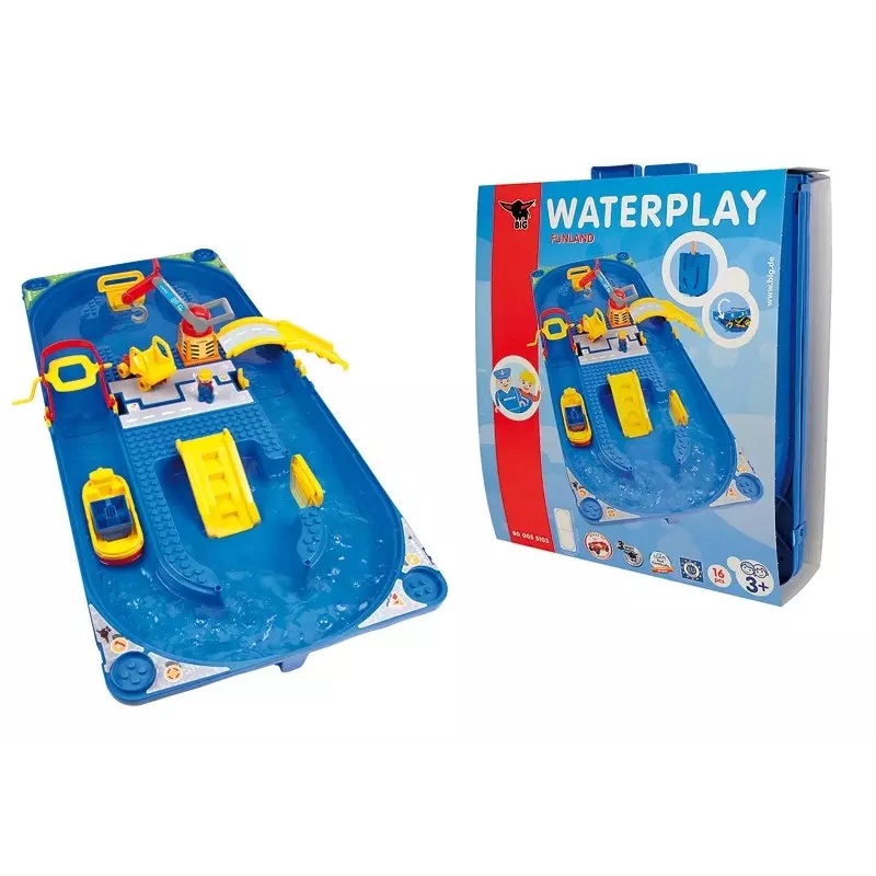 Tor wodny Funland z serii Waterplay marki BIG to zestaw kanałów, w którym główną atrakcją jest koło wodne. Dzieci mogą bawić się wodą.