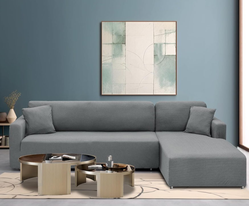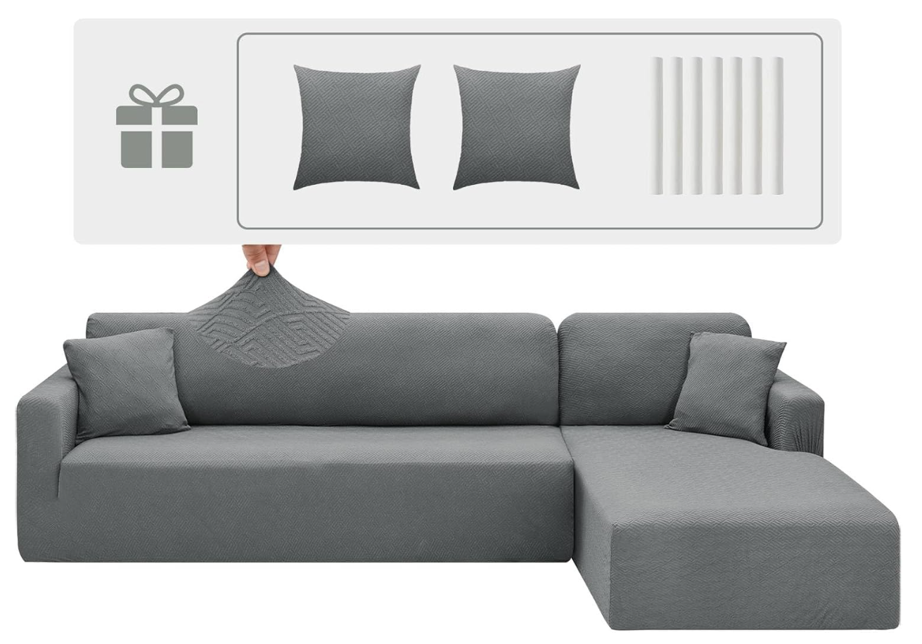 - Zestaw zawiera: 2 pokrowce na sofę, 2 poszewki na poduszki, różne pręty piankowe. Pokrowiec na sofę z półwyspem został zaprojektowany specjalnie do sofy w kształcie litery L, składający się z pokrowca na szezlong i głównego pokrowca na sofę. Niezależnie od tego, czy półwysep sofy znajduje się po lewej czy prawej stronie, ten pokrowiec na sofę będzie pasował!
