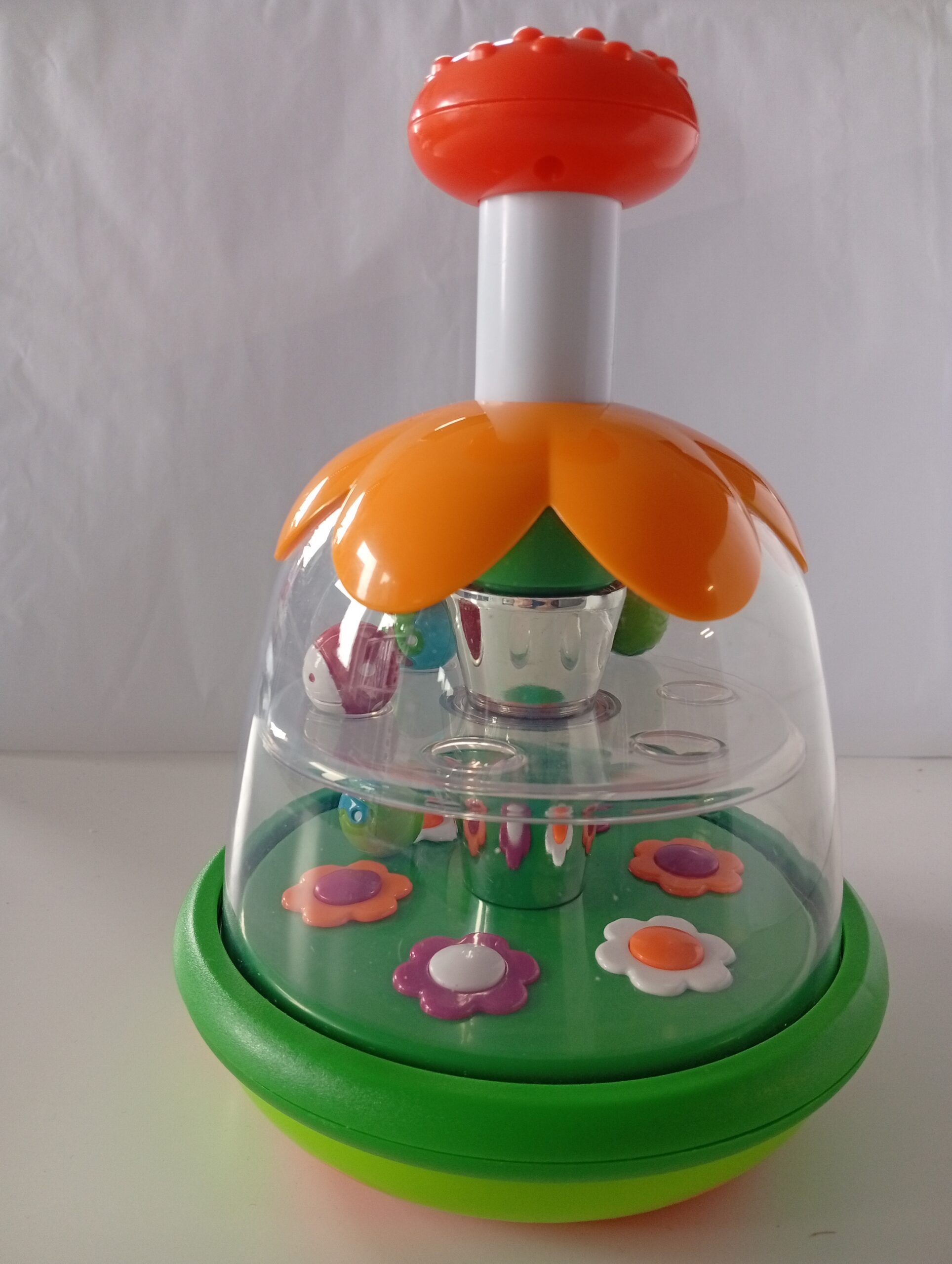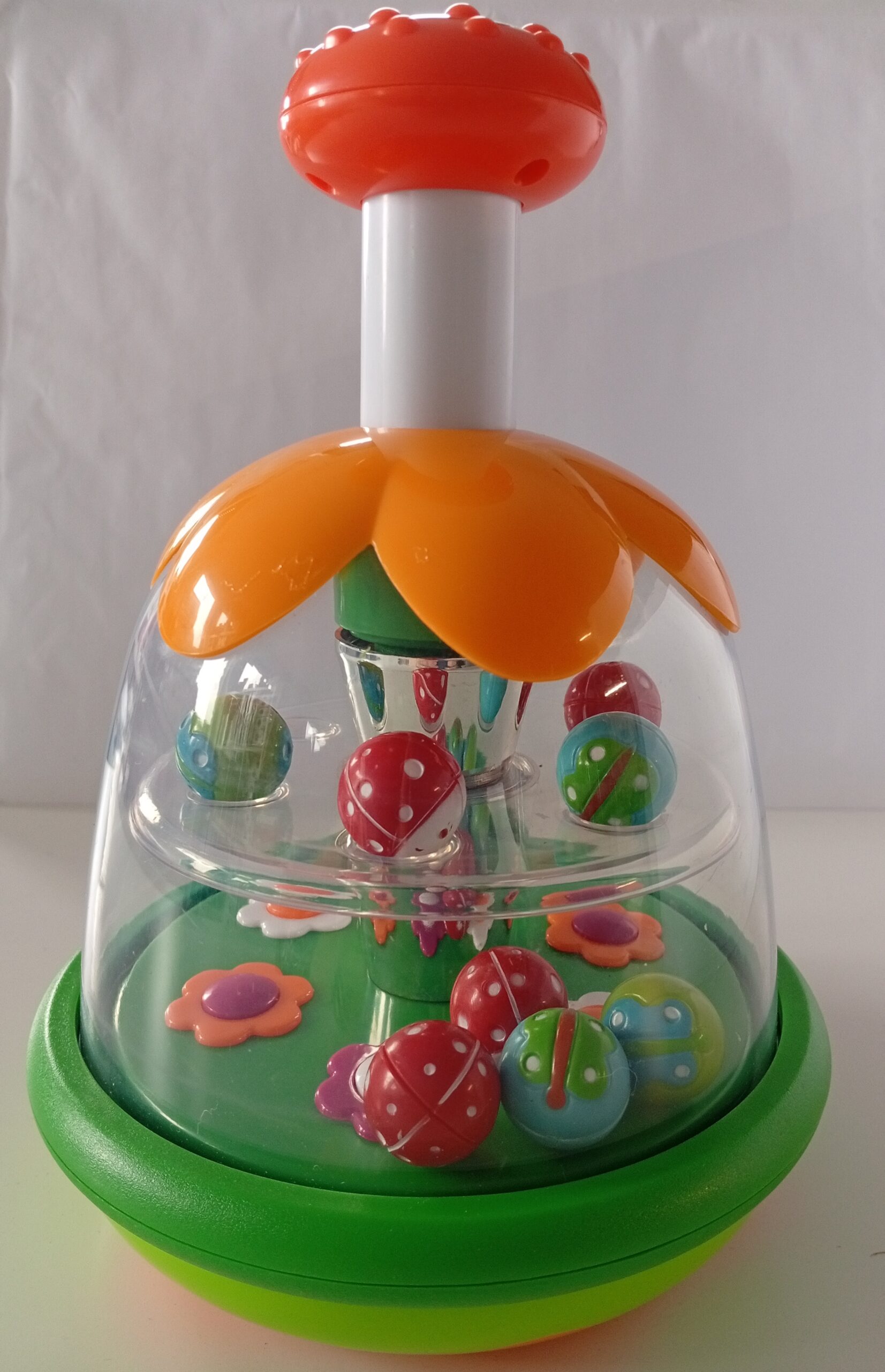 • Zawiera wiele kulek ozdobionych motylami i biedronkami, które szybko obracają się w środku na dwóch różnych poziomach