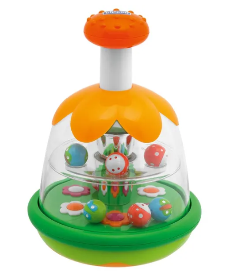 • Magiczny bączek Chicco to nowe wynalezienie klasycznego bączka klasyczna mechaniczna zabawka dla dzieci w kolorowym designie nawiązującym do natury
