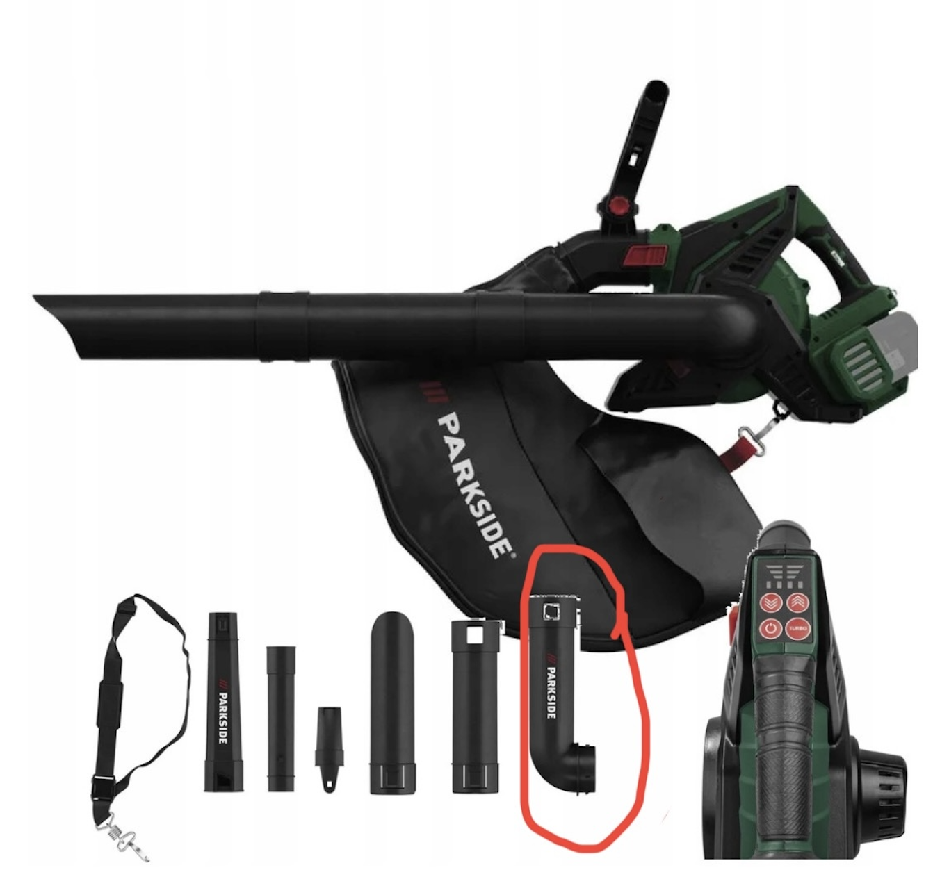 PRODUKT POWYSTAWOWY, W ZESTAWIE BRAK KOLANKA ZAZNACZONEGO NA ZDJĘCIU, PRZEZ CO URZĄDZENIE NIE BĘDZIE WCIĄGAŁO LIŚCI.
