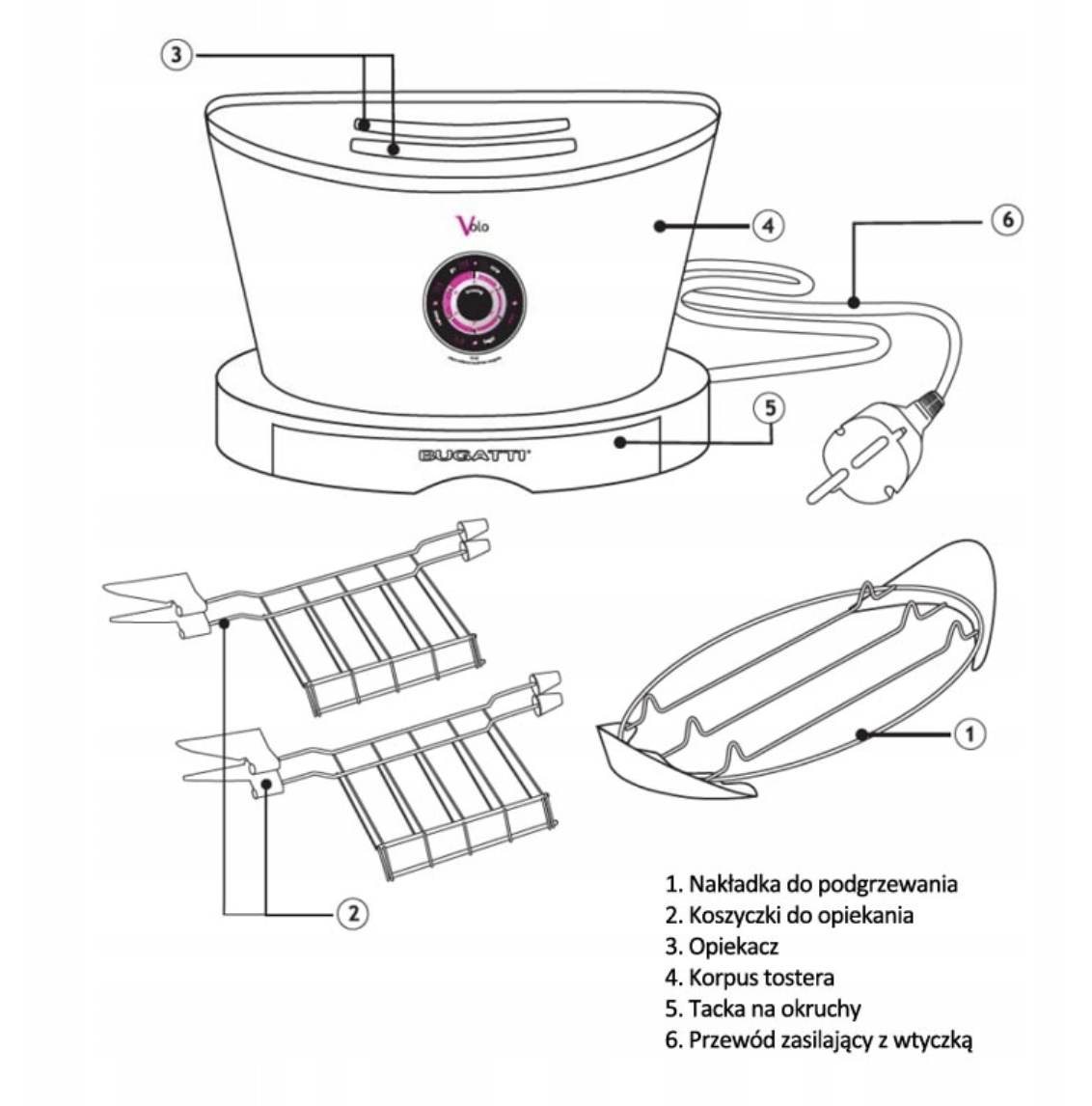 Toster posiada 6 poziomów opiekania: od delikatnego podgrzania do opiekania na chrupko. Poziomy wybieramy za pomocą selekcjonera.