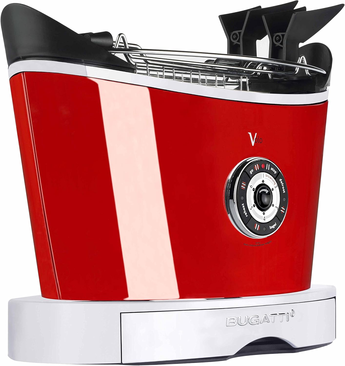 Elegancki toster VOLO Bugatti jest kojarzony ze stylem retro dzięki swojemu wyglądowi i detalom obudowy. Doskonale prezentuje się w kuchni, będzie też ekskluzywnym prezentem np. na ślub.