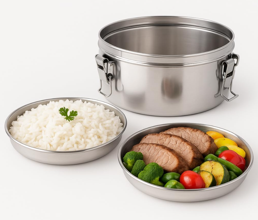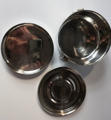 - Z dwoma talerzami i zamknięciem na 3 haczyki. Jeden z talerzy pełni funkcję pokrywki lunchboxa.
