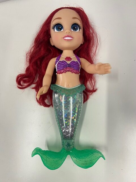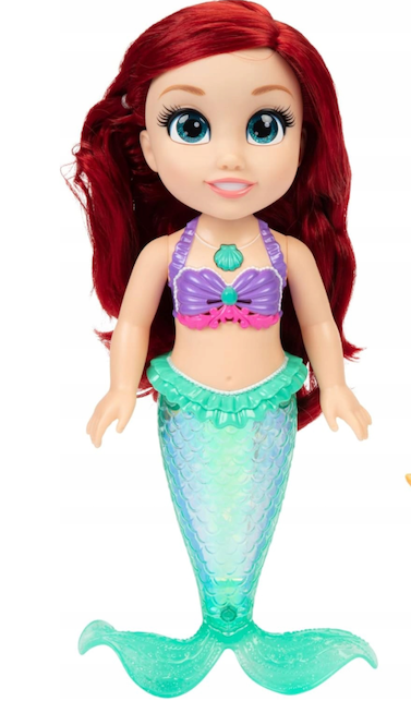 Lalką można również bawić się w wannie. Jej lśniący ogon wypełniony jest brokatem.