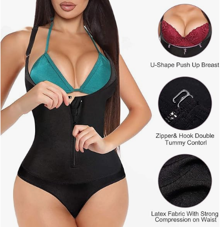 Bielizna modelująca jest wyposażona w 3 haftki i zapięcie na suwak, aby uniknąć podrażnień skóry i zapewnić podwójną kontrolę brzucha. 2 regulowane ramiączka zapewniają optymalne dopasowanie, a także gładsze i bardziej seksowne kształty.