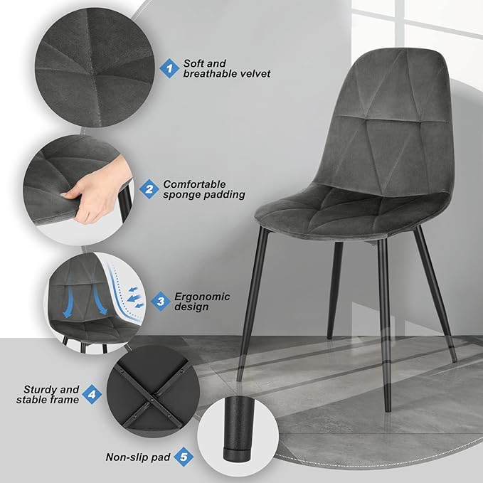 Wyściełane siedzisko: Siedzisko krzesła do jadalni jest wyściełane pianką o dużej gęstości z jedwabistego i eleganckiego aksamitu, dzięki czemu jest idealnym miejscem do odpoczynku na balkonie, w salonie, jadalni, sypialni, kuchni itp.