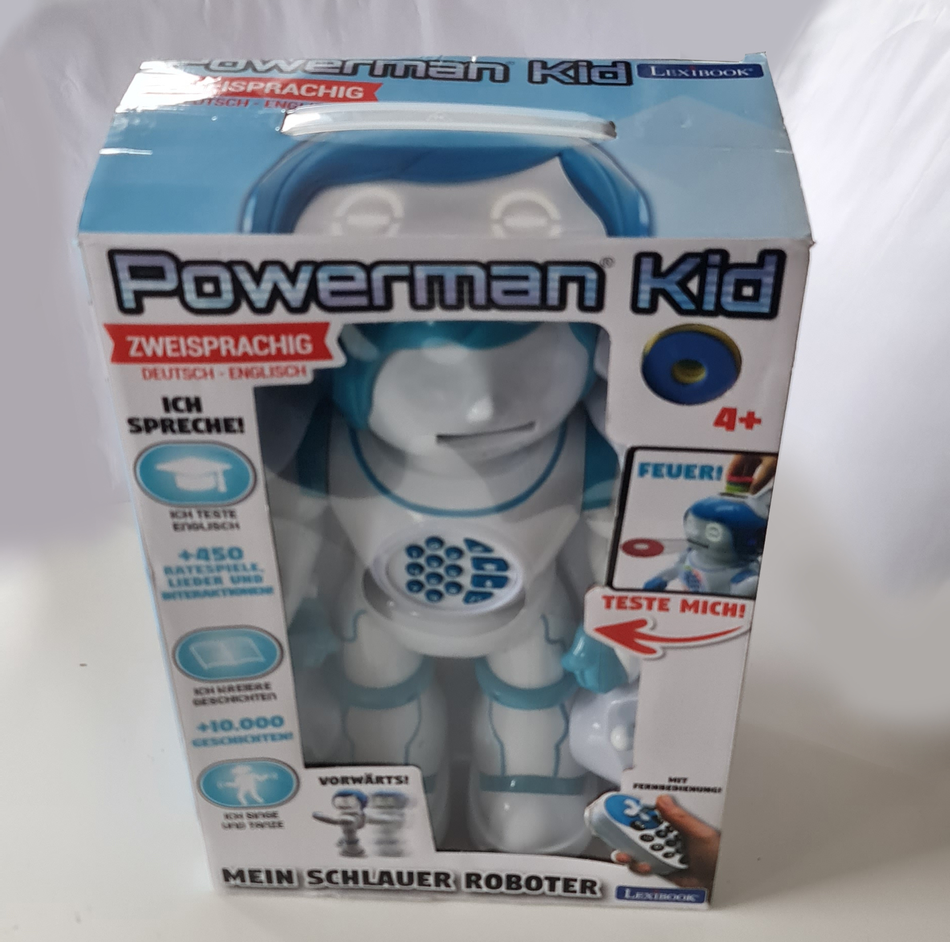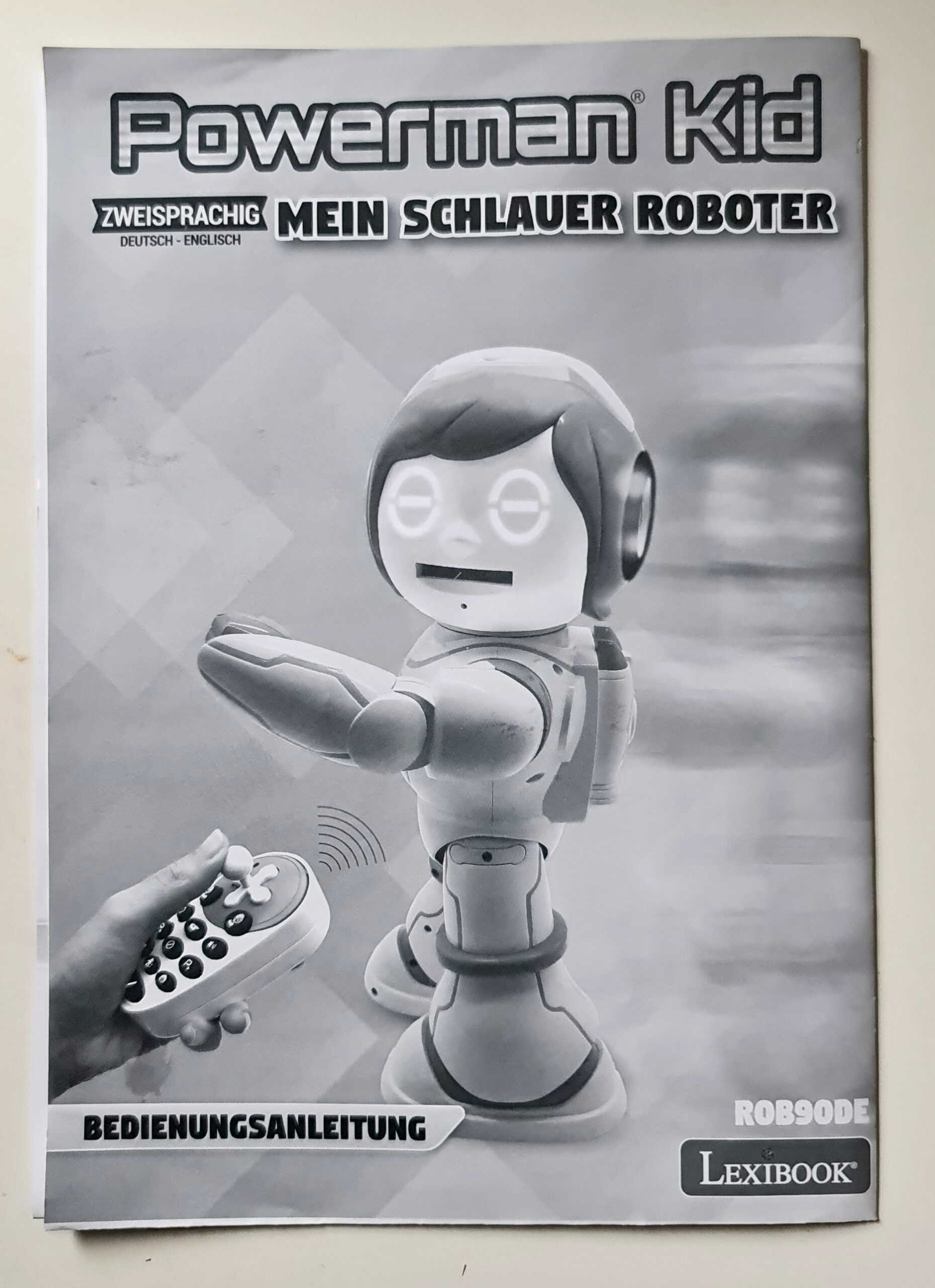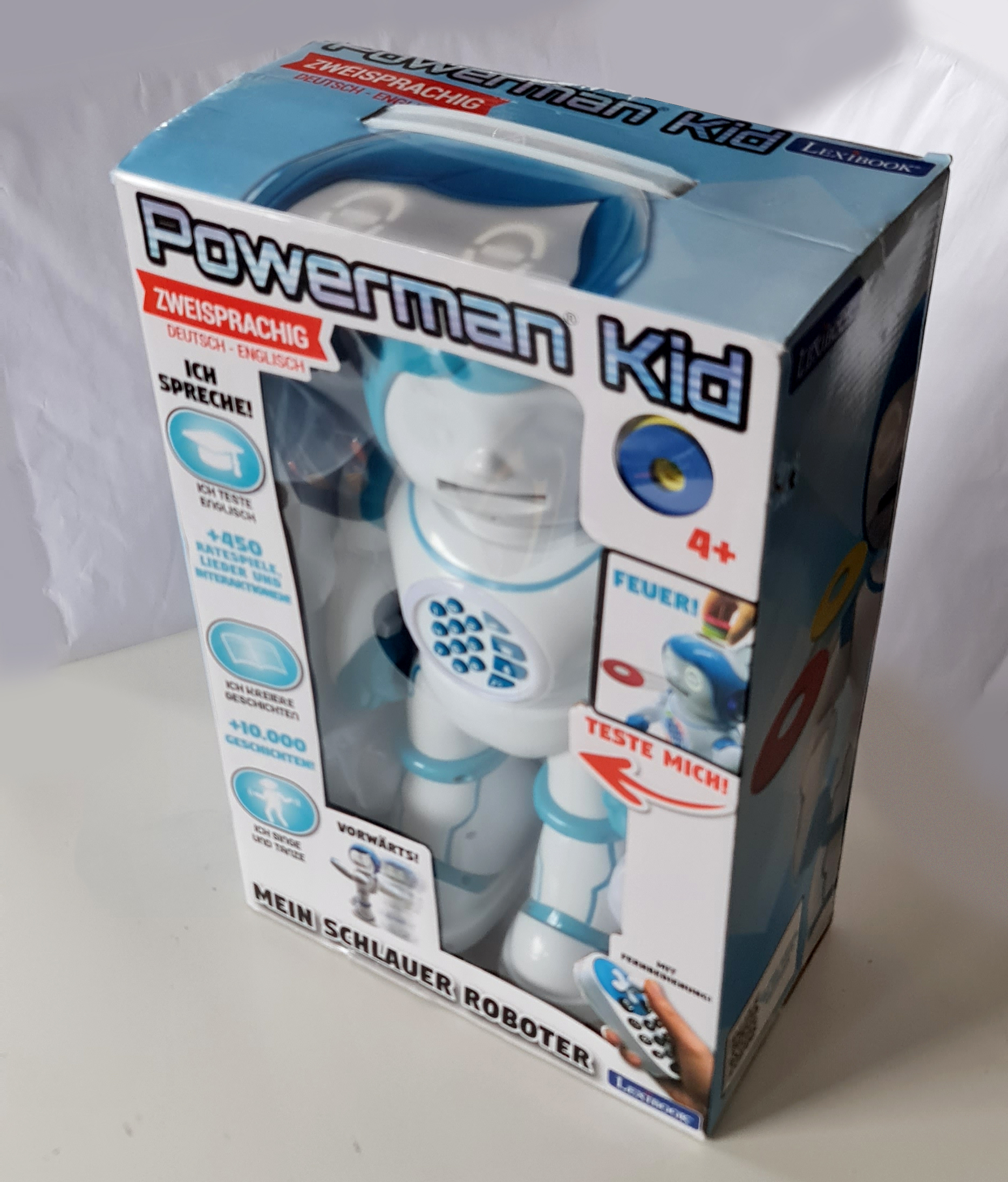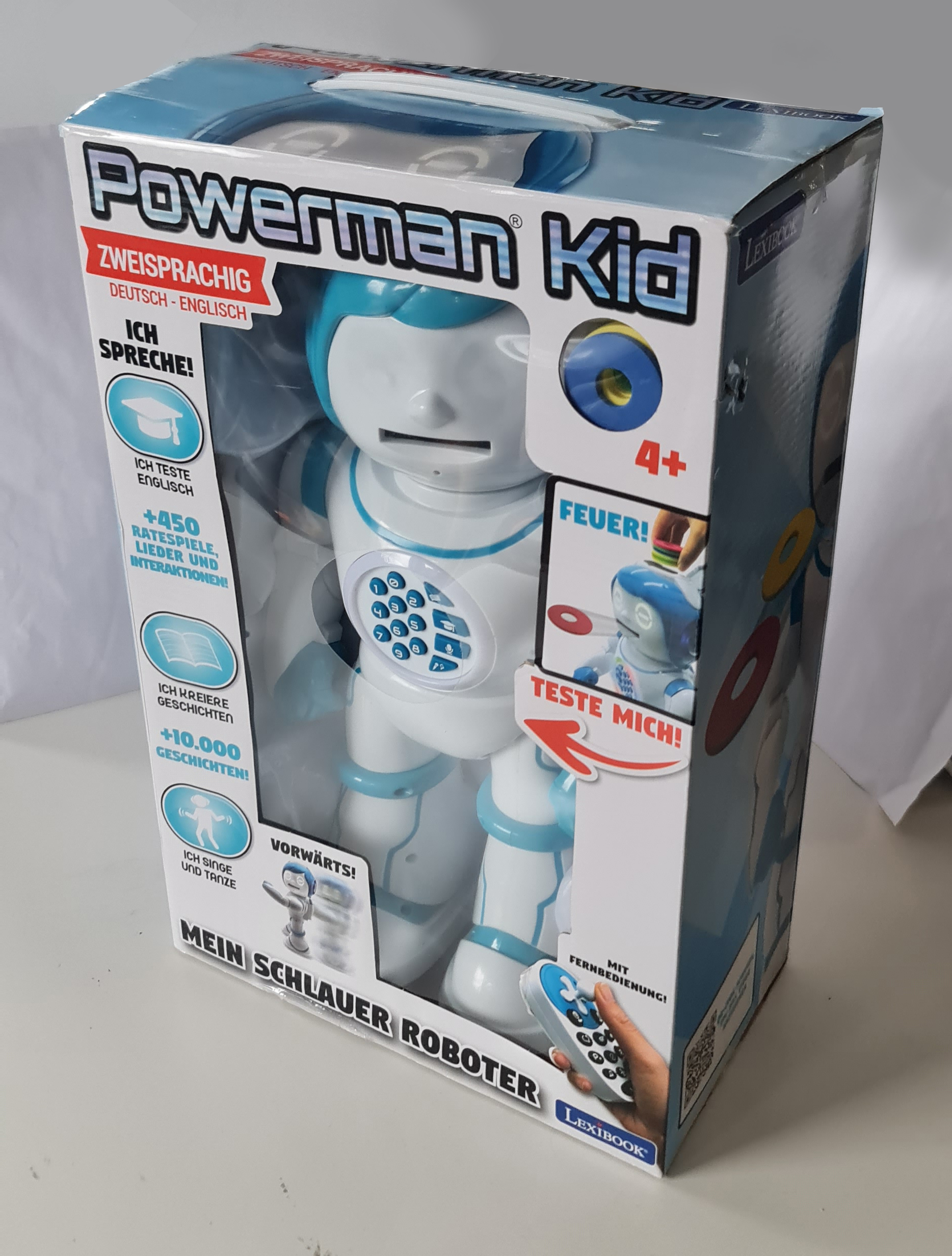 Dwujęzyczny. – W pełni mówiący po niemiecku i angielsku robot dla dzieci, który mówi, tańczy, opowiada dowcipy i gra muzykę.