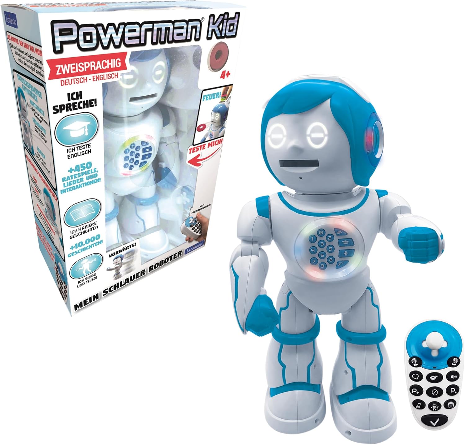 Lexibook Powerman Kid – pedagogiczny i dwujęzyczny robot niemiecko-angielski – chodzący, mówiący tańcząca zabawka śpiewająca – STEM programowalne opowiadanie historii.