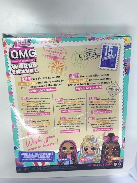 15 NIESPODZIANEK – LOL Surprise OMG World Travel z 15 niespodziankami do rozpakowania: piękna lalka modowa City Babe ma zapierające dech w piersiach rysy twarzy i stylowe włosy. Jako projektantka i filmowiec podróżuje w poszukiwaniu inspiracji