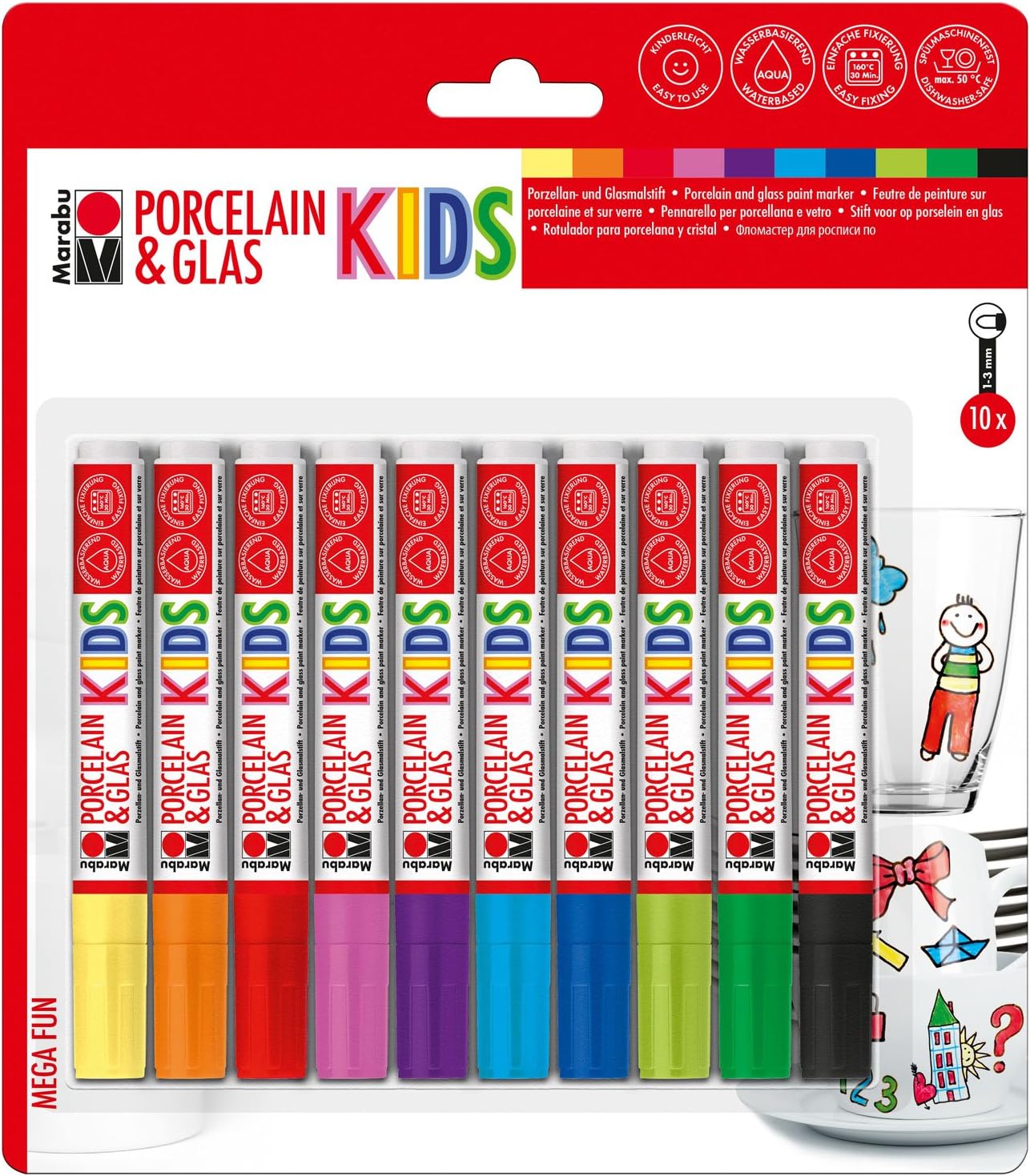 Marabu Mega Fun Farba, Markety do szkła i ceramiki – 10 kolorów