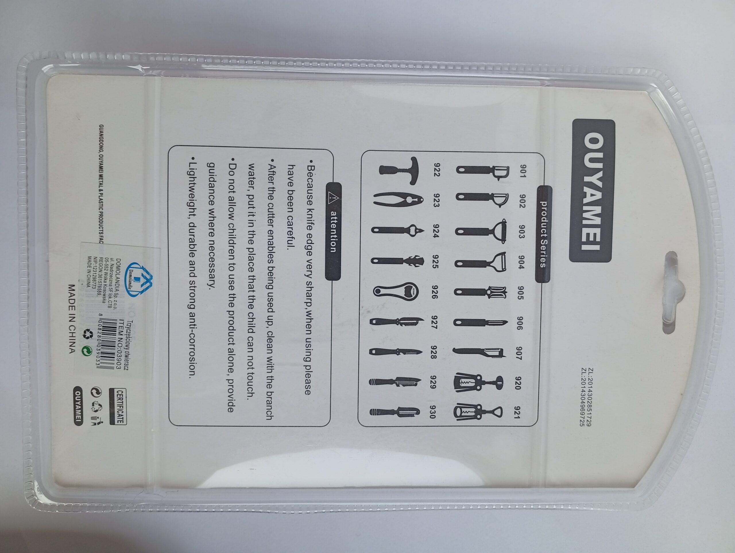 - Nóż posiada zabezpieczenie ostrza zapobiegające skaleczeniu i uszkodzeniom rzeczy w czasie przechowywania i transportu.