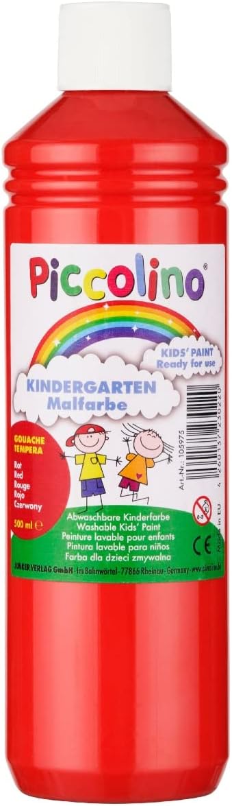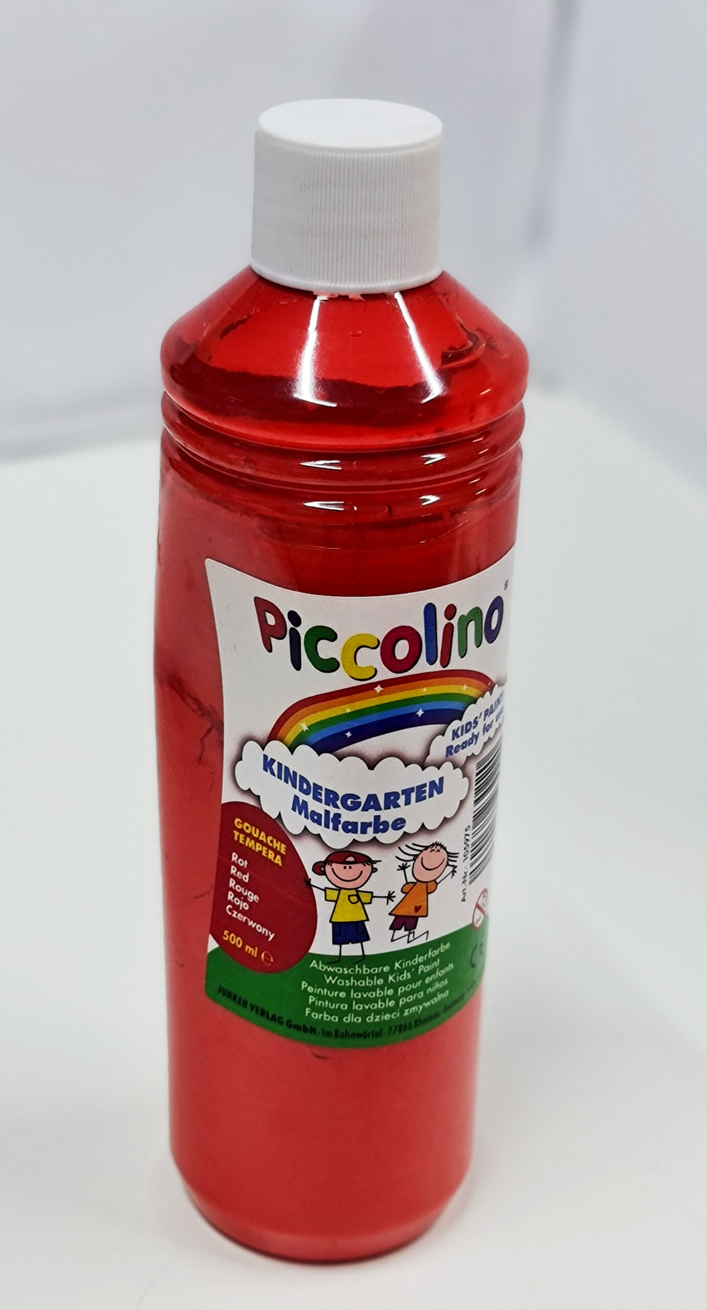 Farba do malowania szkolny Piccolino farba do przedszkola Czerwony 500 ML – dla dzieci farba do malowania na bazie wody i całkowicie bezpieczne.