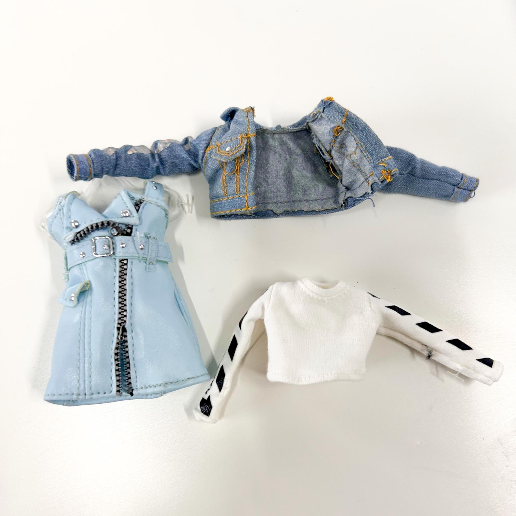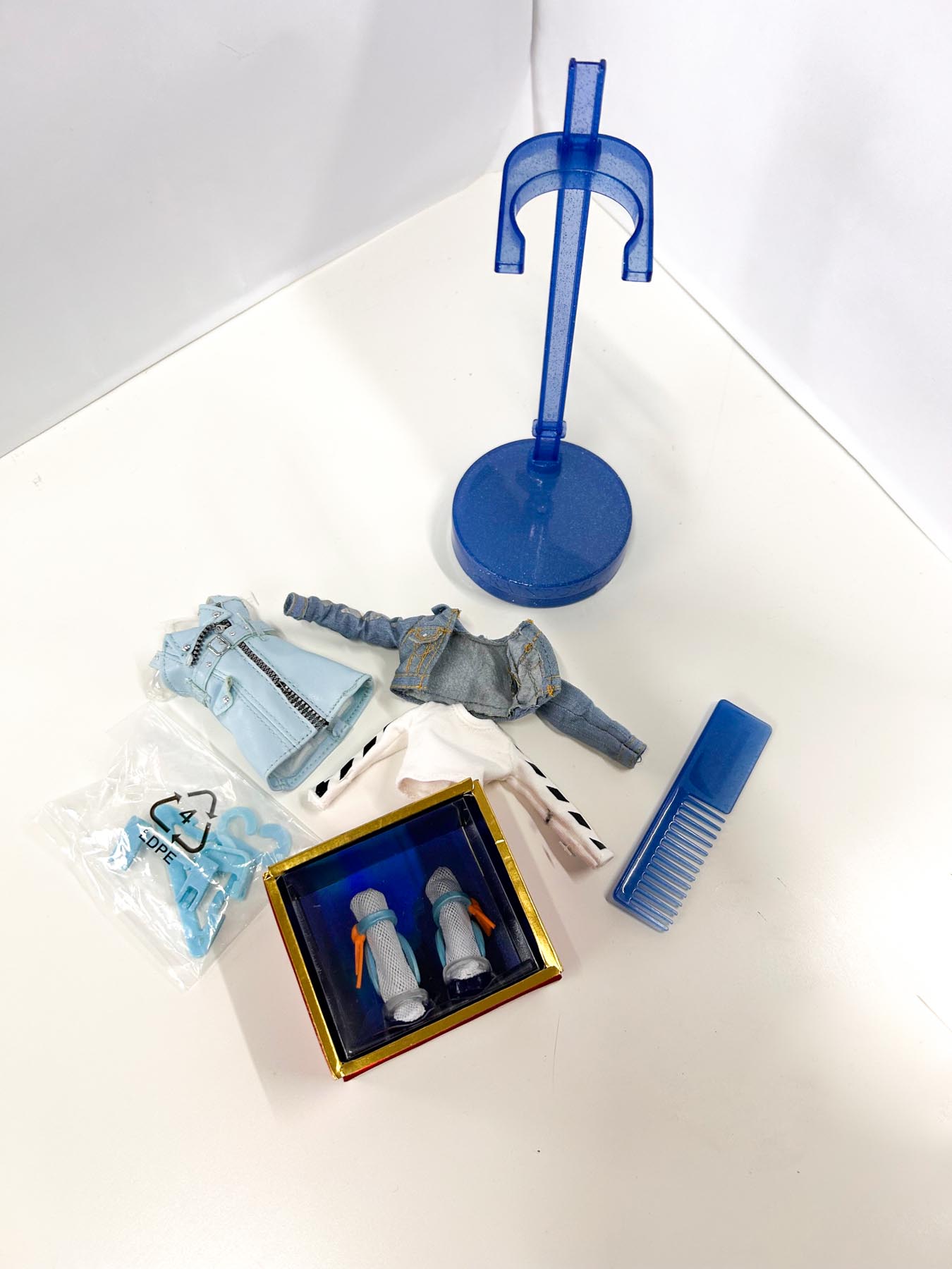 - Zestaw ubrań: Lalka posiada 2 kompletne stroje (topy, sukienki, kurtka, buty), które można ze sobą dowolnie łączyć, tworząc odważne stylizacje.