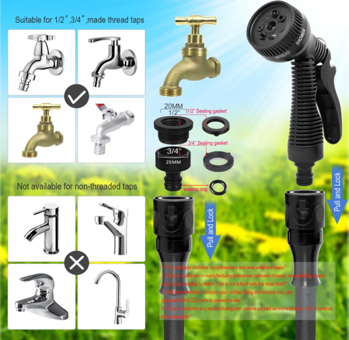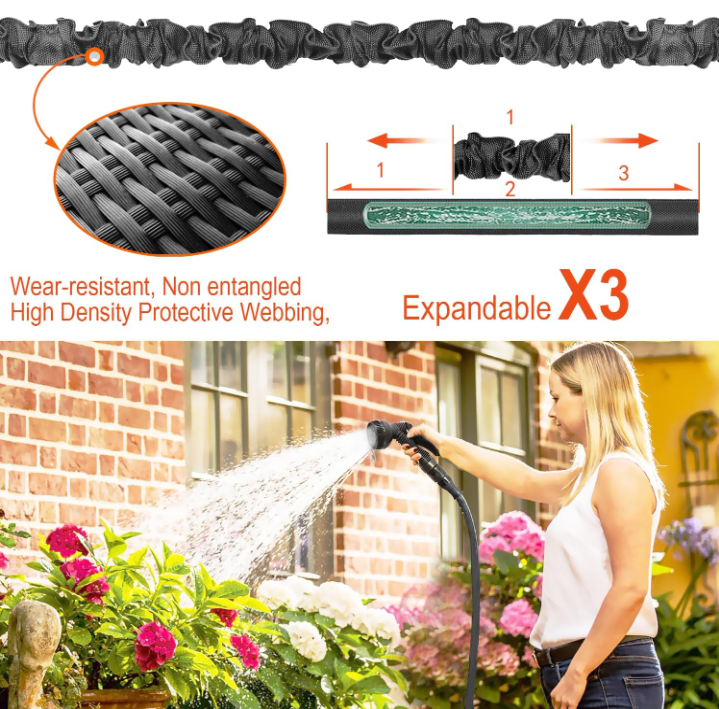 15 m przy pełnym rozciągnięciu. Pasuje do kranu 3/4″, 1/2″.