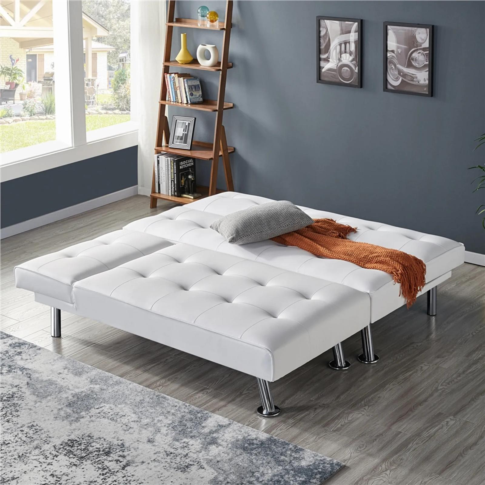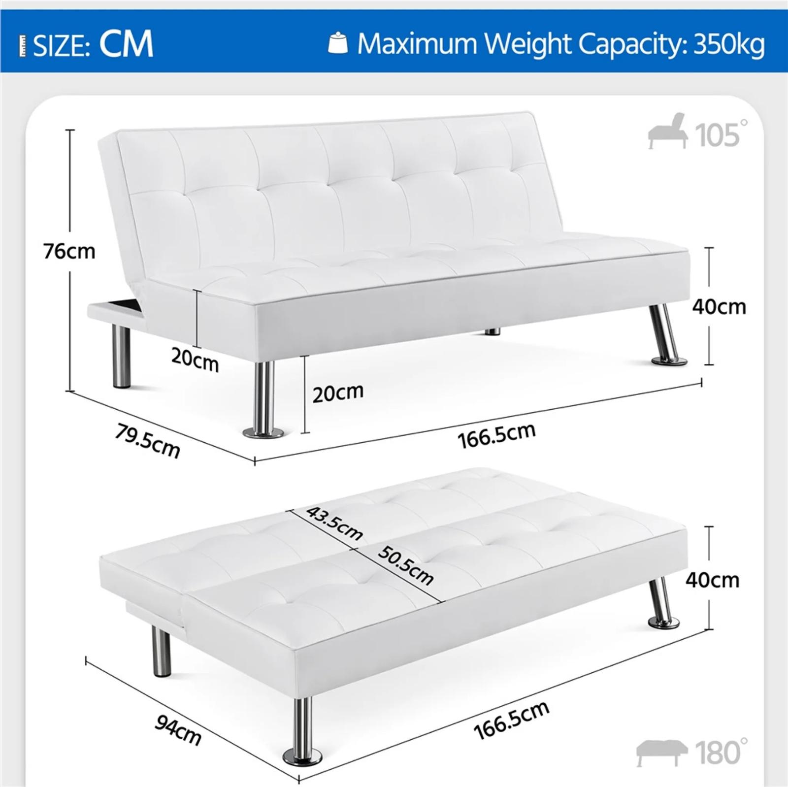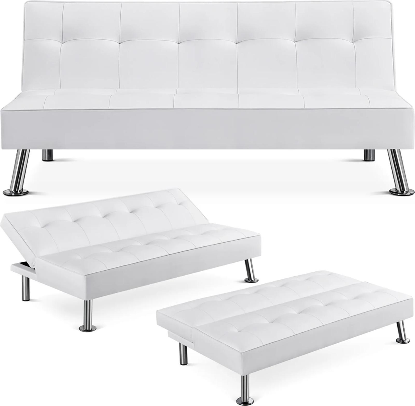 Sofa rozkładana 611109 biała, oparcie składane, 166,5 x 94 x 40 cm, ładowność 350 kg