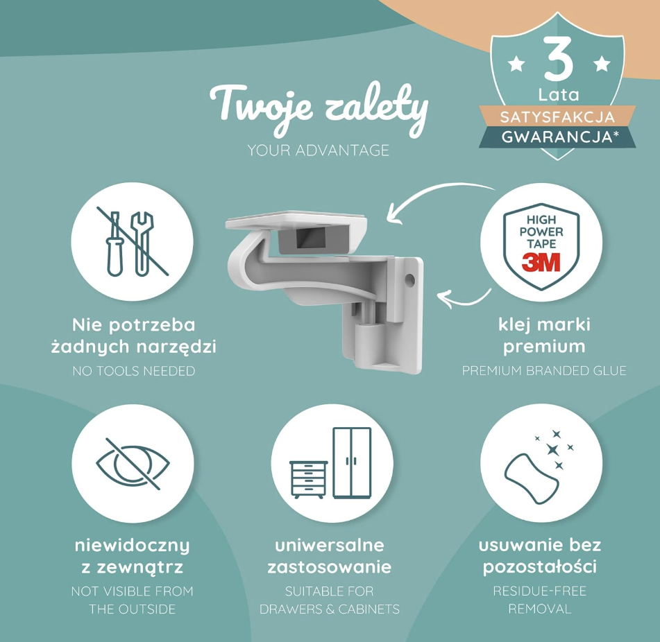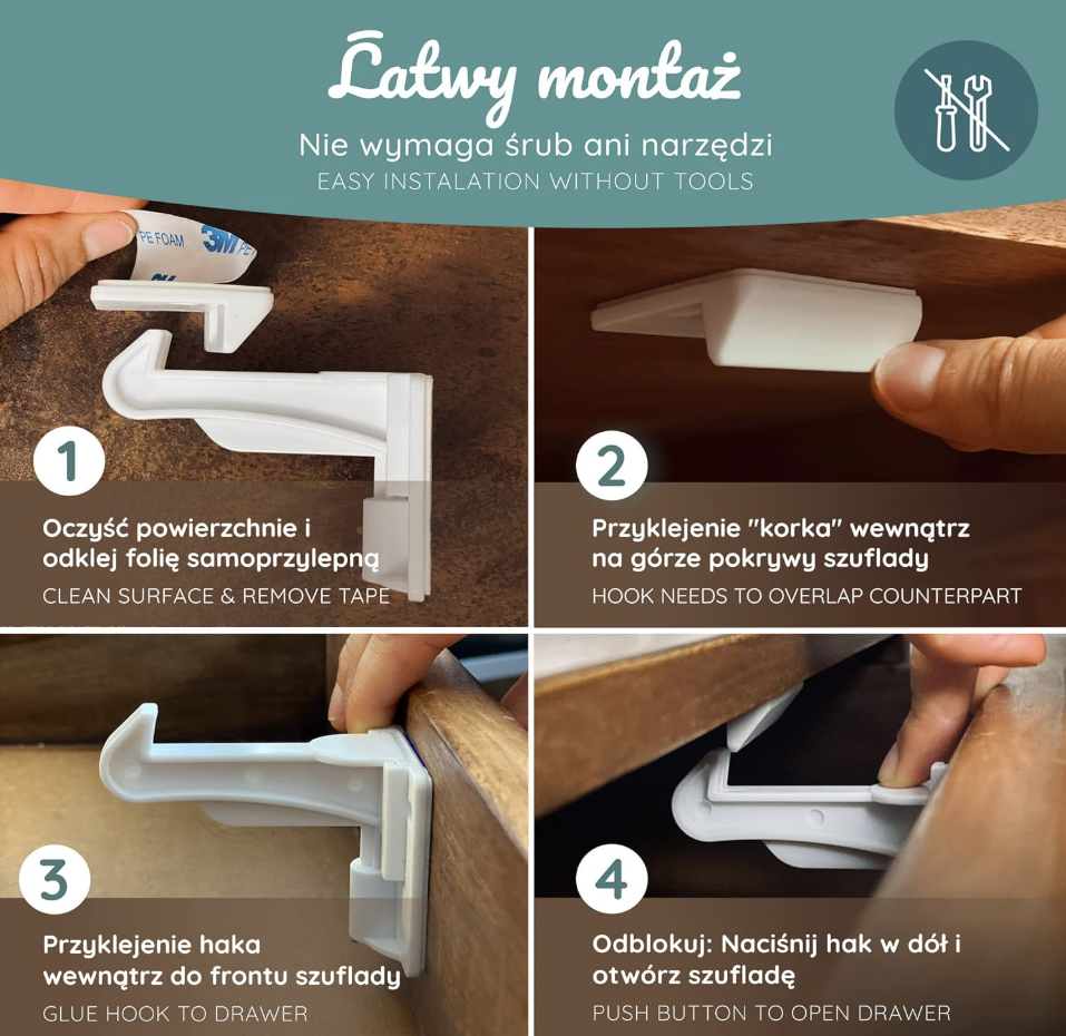Zabezpieczenie szuflad przed dziećmi BEARTOP bez wiercenia